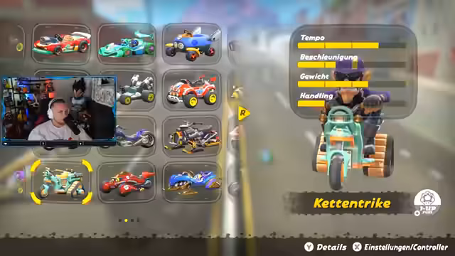 00:30:14Nachdem die technischen Probleme behoben sind, beginnt der Streamer intensiv mit dem Spielen von Mario Kart. Er hat das Ziel, 10.000 Punkte zu erreichen und tauscht sich mit dem Chat über die Charaktere und ihre Eigenschaften aus. Er testet verschiedene Kombinationen und analysiert deren Vor- und Nachteile, insbesondere im Hinblick auf Handling und Endgeschwindigkeit. Im Mittelpunkt stehen die Items des Spiels, insbesondere die Rakete und ihre potenziellen Abschusspunkte, sowie die Entdeckung verborgener Statistiken, die den Spielverlauf beeinflussen können.
