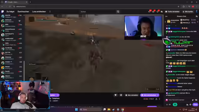 04:17:34Der Streamer kämpft im Spiel mit einem Boss, wobei Timing und Ausweichen der Schlüssel zum Erfolg sind. Er ist frustriert über seine eigenen Fehler und den Zeitdruck. Gleichzeitig interagiert er intensiv mit dem Chat, kommentiert das Spielgeschehen und nimmt Donations und Unterstützungen entgegen, die auch die Reichweite erhöhen. Ein Raid wird als motivierend empfunden und die Leistung der Zuschauer wird gelobt.
