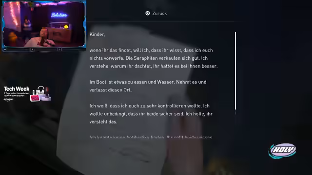 05:27:17Der Streamer vertieft sich in die narrativen Elemente des Spiels, insbesondere die Briefe und Tagebucheinträge der Charaktere. Er betont, wie sehr diese Texte zur Story beitragen und dem Spieler Einblicke in die Gedanken und Gefühle der Figuren ermöglichen. Gleichzeitig erwähnt er die Spannung zwischen den Charakteren und die romantischen Elemente in der Geschichte.