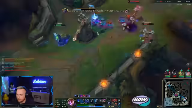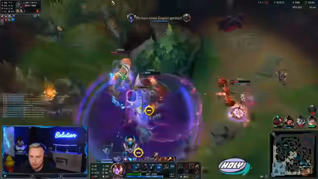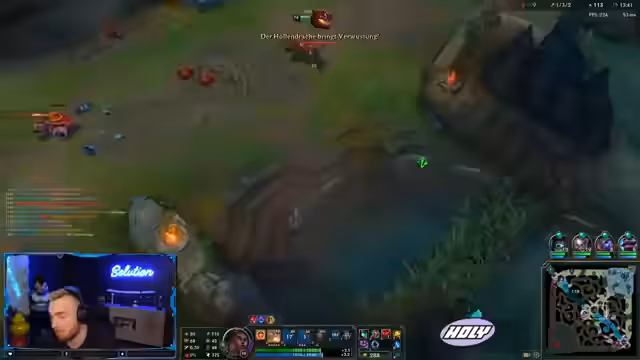 05:54:03Die Spieler passen ihre individuelle Spielweise an die Team-Komposition an. Der Streamer plant, sich zurückzuhalten und Vardial zu peelen, anstatt aggressiv zu engagen, es sei denn, es gibt klare Vorteile. Mit Sona soll anfangs langsam gespielt werden, um dann im Teamfight mit Heilung und Ulti zu glänzen. Das Team erzielt frühe Vorteile, indem es einen Flash von Mundo erzwingt und ihn ausschaltet, was als großer Erfolg gewertet wird. Trotz einiger Missgeschicke auf der Lane bleibt das Team optimistisch und fokussiert auf die Objectives. Die Kommunikation über gegnerische Positionen und fehlende Summoner Spells ist weiterhin entscheidend. Es wird betont, dass man die Grubbies sichern muss, um weiter zu skalieren.