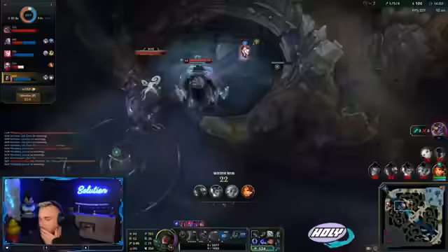 04:59:26Das Team startet aggressiv in die Bot-Lane, um frühe Kills zu sichern und Drake zu kontrollieren. Es wird versucht, den Gegner zu überraschen, indem man sich in Büschen versteckt und auf Engagements wartet. Die Spieler konzentrieren sich darauf, Vision zu kontrollieren, um feindliche Bewegungen zu antizipieren. Trotz einiger Missgeschicke und verlorener Flashes bleibt das Team fokussiert auf die Objective-Kontrolle, insbesondere den Drake. Die Kommunikation über gegnerische Positionen und fehlende Summoner Spells ist entscheidend, um Vorteile zu erzielen und die Lane-Phase zu dominieren. Die Spieler sind sich bewusst, dass der Mundo des Gegners eine starke Bedrohung darstellt und planen, ihn gezielt auszuschalten.
