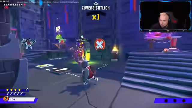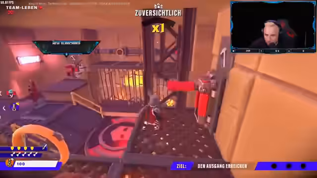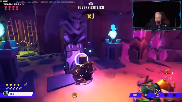 01:39:00Der Stream konzentriert sich auf das kooperative Gameplay des Spiels 'KOM KING OF MEAT'. Das Team arbeitet sich durch verschiedene Dungeons, die aus Jump'n'Run-, Kampf- und Rätselphasen bestehen. Die Kommunikation und Teamarbeit stehen im Vordergrund, da die Spieler komplexe Rätsel lösen, wie das Finden und Kombinieren von Teilen für ein Gesicht, und gegen starke Gegner kämpfen, die oft Teamwork erfordern. Mehrere Male werden Teamleben durch unkoordinierte Aktionen oder fehlende Heilung riskiert.