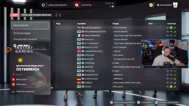 02:49:57Der Stream von Roar Productions und die Lobbys wurden von wiederkehrenden technischen Problemen und Abstürzen heimgesucht. Dies führte zu häufigen Neustarts und langen Wartezeiten. Micky beklagte den daraus resultierenden hohen Druck und die Panik, nicht rechtzeitig in die Lobby gelangen zu können. Die unzuverlässige Technik sorgte für Frustration und Unterbrüche im Renngeschehen.