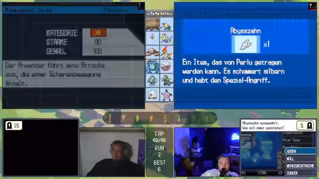 06:35:29Im Zentrum dieses Abschnitts steht die Optimierung der Pokémon-Ausrüstung und das Management seltener Items und Attacken. Der Streamer überlegt, ob er eine bestimmte Attacke wie Siedewasser beibringen soll, was den Einsatz eines bestimmten, ihm nicht sympathischen Pokémon erfordern würde. Es geht auch darum, die Stärken und Schwächen der einzelnen Pokémon zu bewerten und zu entscheiden, welche Fähigkeiten in bestimmten Situationen am wertvollsten sind, selbst wenn dies eine strategische Umstellung bedeutet.