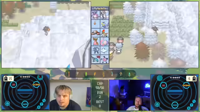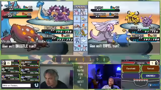 01:01:22Aufgrund der Verluste beginnt der Streamer mit dem Aufbau eines neuen Teams. Er fängt ein Elektro-Pokémon (Lektrobal) und stellt ein neues umfassendes Team mit unterschiedlichen Pokémon-Typen zusammen. Das neue Team, bestehend aus Schindel, Lektrobal und Brüssel, wird gegen einen Trainer eingesetzt. Trotz einer anscheinend guten Team-Zusammensetzung wird der Kampf aufgrund von Fähigkeiten wie 'Flüchtblock' und 'Steinhagel' verloren. Das Lektrobal stirbt, was den Run praktisch beendet.