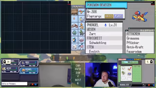 00:00:00Der Stream wird eröffnet und die Start-Pokémon werden ausgewählt. Es handelt sich um einen Nuzlocke-Lauf mit spezifischen Regeln, darunter ein männlicher Starter und ein Opfer-Pokémon. Die ersten Pokémon wurden bereits gefangen, darunter ein Feuervogel und ein Schatten-Pokémon. Der Streamer stellt das Team und die Anfangsstrategie vor, einschließlich des geplanten Einsatzes von Items wie Reflektor zur Verstärkung des Nübel-Pokémon.