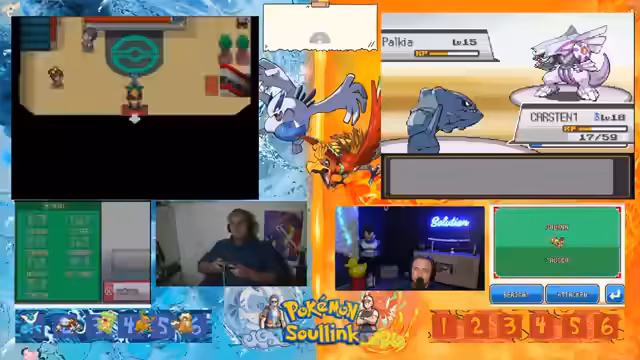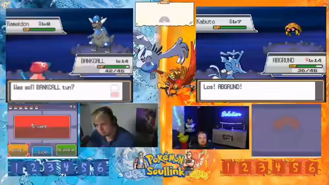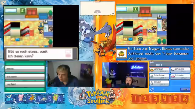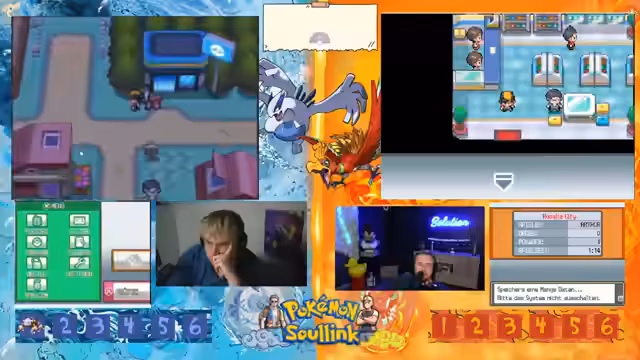 01:15:55Der Stream beginnt mit der Pokémon SoulLink Challenge in Kooperation mit Krokoboss. Die beiden diskutieren die Spielregeln, darunter den Verkauf von Pokémon-Namen an Zuschauer und die Level-Cap-Beschränkungen. Sie starten ihr Spiel, diskutieren erste strategische Entscheidungen und planen, Pokémon für Subs zu verkaufen. Die Herausforderungen des Co-op-Spiels werden direkt thematisiert.
