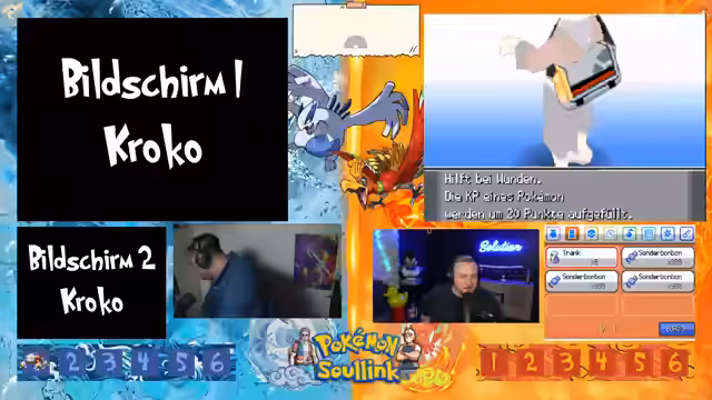 00:47:35Nach finalen technischen Anpassungen (Dateien für den Randomizer, Controller-Einstellungen) wählen Krokoboss und der Streamer ihre Starter-Pokémon aus. Sie gehen kurz die Spielmechaniken durch, feuern sich gegenseitig an und starten voller Vorfreude in die Soul Link Challenge mit Fokus auf frühe Kämpfe und Routenplanung. Das gemeinsame Zield ist der erste Orden innerhalb der festgelegten Zeit.