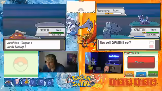 00:06:46Der Stream eröffnet mit voller Energie und der Ankündigung der Pokémon Soul Link Challenge in Zusammenarbeit mit @Krokoboss. Beide bereiten sich auf das gemeinsame Abenteuer vor, diskutieren kurz die Grundidee des Soul Links und zeigen sich enthusiastisch für die bevorstehende Herausforderung. Die Stimmung ist aufgerämt mit Fokus auf die kommende gemeinsame Session.