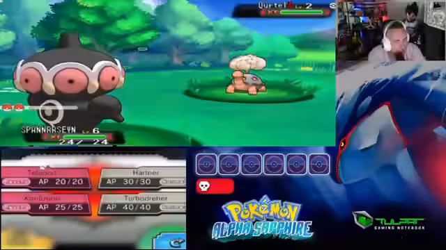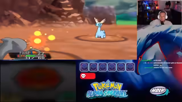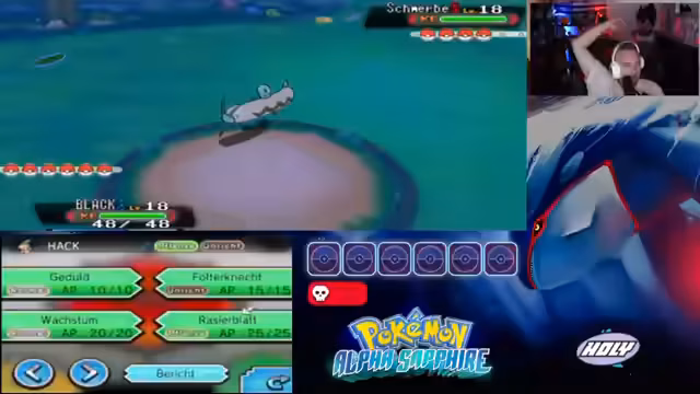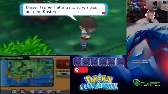 01:35:20Nach erfolgreicher Lösung der technischen Probleme startet der Nuzlocke-Run in Alpha Saphir. Der Streamer begeistert sich für die Grafik und das Kampfsystem des Spiels. Das Starter-Pokémon, ein Geist-Typ mit neutraler Wesenheit, wird ausgewählt. Auf der ersten Route wird das erste Pokémon, ebenfalls ein Geist-Typ, gefangen. Der erste Kampf gegen einen Rivalen beginnt, wobei der Streamer einen Schaden anrichtet, der eigentlich nicht möglich sein sollte.