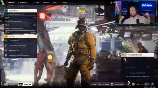 08:08:21Der Streamer spielt mehrere Runden Arc Raiders, oft mit Frust über Rundenverläufe. Er erwähnt 'Venator 4' als dominante Waffe und beschwert sich über Probleme mit dem Sounddesign (z.B. eigene Schritte sind laut, Gegner nicht hörbar). Trotz einiger erfolgreicher Extraktionen und Loot-Sessions (u.a. Blueprints für Munition) bezeichnet er die Session als seine 'schlechteste Arc Raiders-Laufbahn'. Technische Probleme wie Headset-Schmerzen und Bugs werden mehrfach thematisiert.