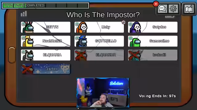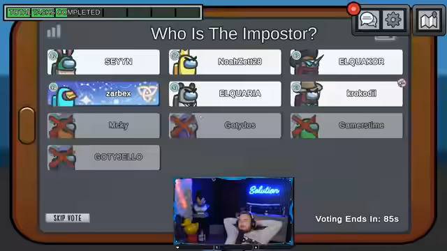 05:57:30Nach einem Kill in Security wird über die Positionen von Spielern wie Zabex und G-Time spekuliert. Der Streamer berichtet, dass er mit G-Time unterwegs war und dieser sich verdächtig verhielt, während andere wie Sane und Danny Alibis hatten. Es folgten Votes gegen Aquaria und Noah, wobei die Diskussion über visuelle Tasks und Kill-Zeitpunkte dominierte.