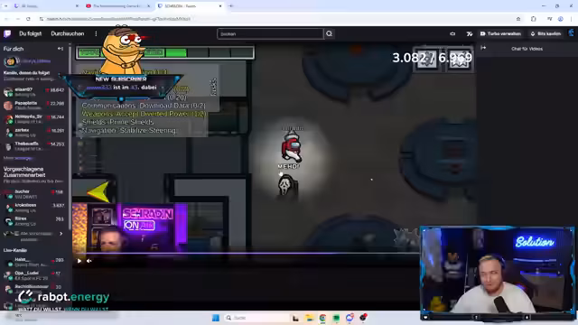 02:56:42Nach einer erfolgreichen Runde, die mit einem 8:0-Sieg endete, bedanken sich die Teilnehmer für ein unterhaltsames Spiel. Es wird auf die erhaltenen Spenden eingegangen, wobei Schradin eine Spende von 40 Euro erwähnt, die er über den Donation-Button erhalten hat. Die Spieler planen bereits die nächste Among Us-Runde für den kommenden Donnerstag, möglicherweise als 'Christmas Edition'. Die Diskussion dreht sich auch um die Leistung einzelner Spieler, wobei Eli kritisiert wird, seine 'Kids' (Charaktere) schlecht gespielt zu haben, obwohl der Plan letztendlich aufging. Es wird auch der 'All-Time-Record' von Rose bei den Subs hervorgehoben, der 30 Subs von einer Person erhalten hat, was als außergewöhnlich gilt.