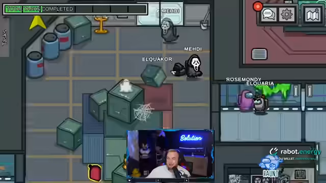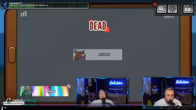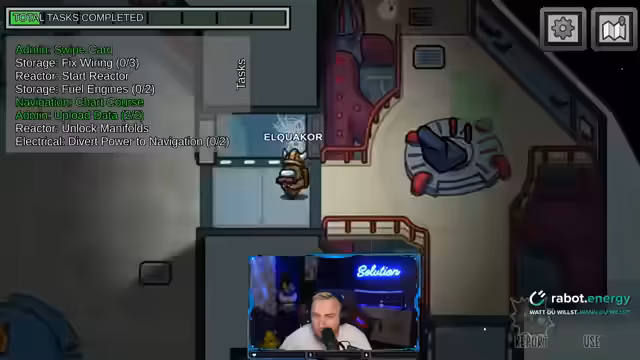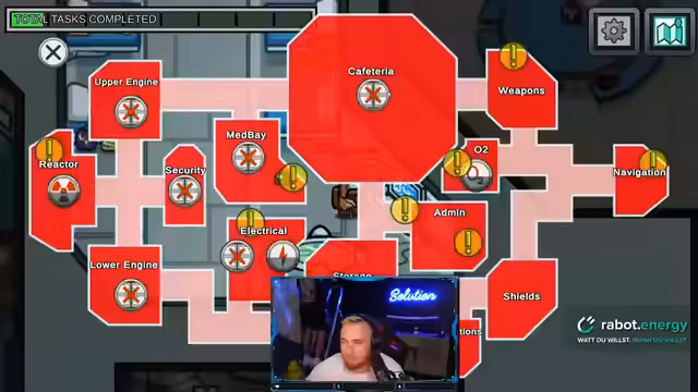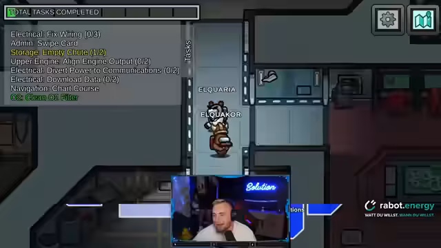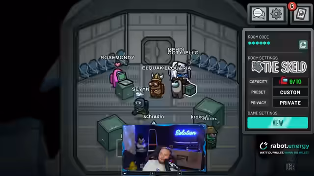 00:29:39Die erste Among Us-Runde beginnt mit einem "wilden Squad" und der Streamer ist erneut Crewmate. Die Lichter gehen aus, und kurz darauf wird eine Leiche in der Cafeteria entdeckt. Eli wird verdächtigt, da er angeblich kurz zuvor Aquaria getötet hat. Die Diskussion konzentriert sich auf die Bewegungen der Spieler bei ausgeschalteten Lichtern. Schradin wird als AFK beschrieben, während Edi und Medi sich bewegen. Der Streamer, als Beschuldigter, versucht, sich zu verteidigen und die Aufmerksamkeit auf Schradin zu lenken, der den Kill nicht gesehen haben will. Die Runde ist geprägt von Verwirrung und schnellen Anschuldigungen, was die Dynamik des Spiels widerspiegelt.