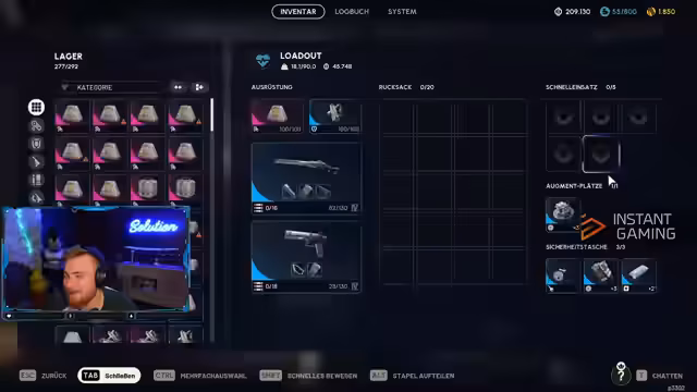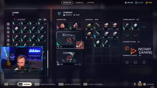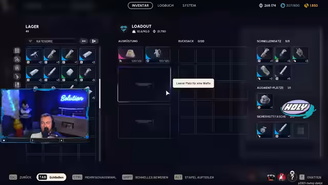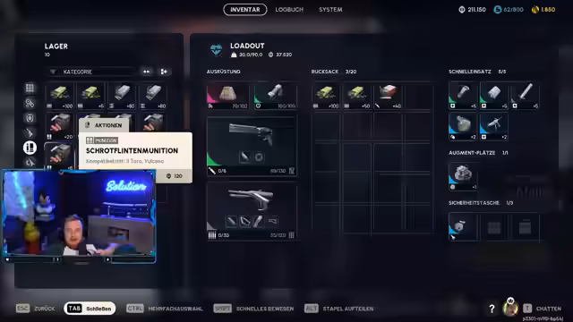 08:36:52Ab 31012 werden Munitionstypen für verschiedene Gegner erklärt: rote Munition für Arcs (Roboter), blaue für menschliche Gegner und grüne für leichte Waffen. Es wird betont, dass manche Waffen spezifische Munition benötigen, wie die Envil für schwere Munition. Der Streamer erläutert auch Runden-Timer, die maximal eine halbe Stunde dauern, und wie man mit knapper Zeit umgeht. Baupläne wie für das erweiterte Magazin der Venator werden gezeigt und deren Lagerung im Safe-Slot diskutiert.