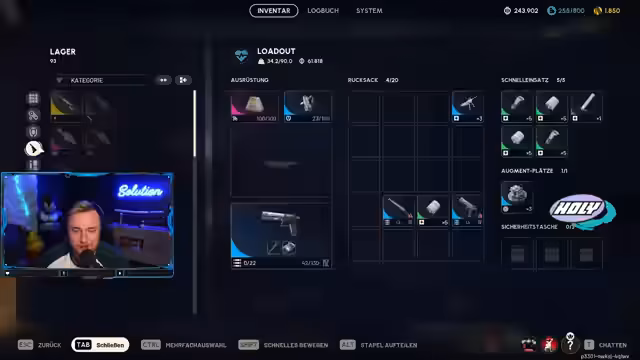 08:12:33Ab 29553 wird das Crafting-System detailliert erklärt. Baupläne, wie der für C4, werden gefunden und im Lager gespeichert. Diese Blueprints sind wertvoll, um Ausrüstung herzustellen, und müssen für spätere Verwendung aufbewahrt werden. Der Streamer zeigt, wie man Materialien sammelt, etwa Metallteile und Stoff, und wie man diese in der Werkbank nutzt. Es wird auch auf die Wichtigkeit von Sicherheitstaschen und dem Verkauf von überschüssigem Loot eingegangen, um das Lager zu optimieren.