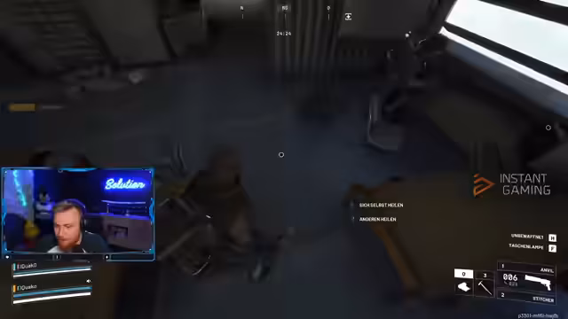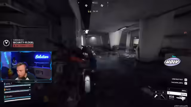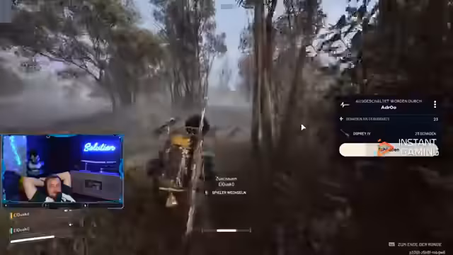 02:49:48Ein neuer Kampf um einen Tower startet, wo das Team strategisch vorgeht: Der Streamer rennt links, fordert Paco auf, von hinten zu flanken, und plant den Einsatz von Granaten. Die Kommunikation ist drängend (‘Wir müssen ganz links, ganz links‘), während sie Gegner aus einer kleinen Hütte beobachten. Es folgt ein intensives Feuergefecht, bei dem ein Gegner mit einem AP (Armor-Piercing) Schaden vom Streamer getroffen wird. Trotz fehlender Granaten und Schildproblemen versuchen sie, den Gegner unten auszuschalten, wobei die Rolle des ‘Meldkurses‘ für die Beute diskutiert wird.
