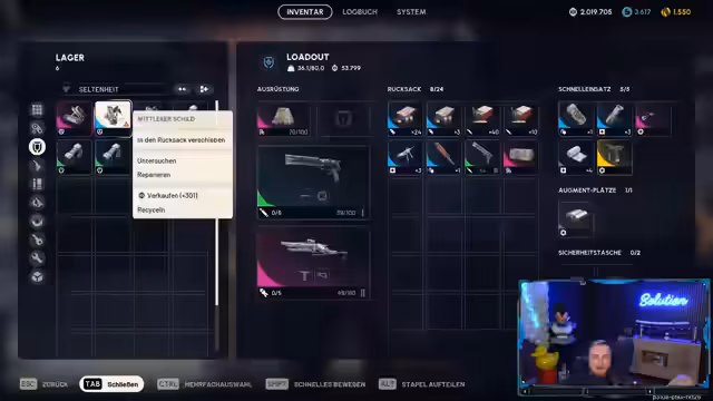 18:12:35Nach einer längeren Runde analysiert der Streamer seine Spielstatistiken und untersucht die Vorteile bestimmter Skillpunkte. Er entscheidet sich für die Sicherheitslücke und das gelbe Trinem-Hechten, die ihm einen erheblichen taktischen Vorteil verschaffen, insbesondere bei der Verwendung schwerer Schilde. Gleichzeitig optimiert er sein Inventar, verkauft ungenutzte Gegenstände und plant seine bevorzugten Orte für die Beutejagd, wie das Krankenhaus und Spandau, um seinen Profit zu maximieren.