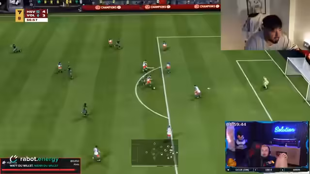 06:41:41Zu Beginn des Streamssegmentes werden verschiedene Fußballspiele und Spielerleistungen diskutiert. Es werden Spielstände wie 5-3 und 7-6 genannt, und auch besondere Aktionen wie ein Doppel-Kopfball hervorgehoben. Zudem gibt es eine Diskussion über die Team-Formationen und Spieler, wie Hansen und Rafinha, die auf der Bank sitzen. Der Fokus liegt auf den sportlichen Ereignissen und den Meinungen des Streamers zu den aktuellen Spielen und Entscheidungen auf dem Feld.