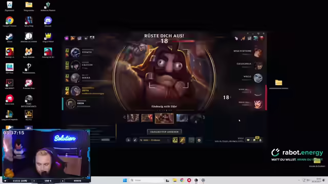 18:09:31Der Streamer spricht über das aktuelle League of Legends-Spiel und äußert sich frustriert über das Verhalten einiger Mitspieler. Er betont, wie wichtig es ist, ruhig zu bleiben, auch wenn das Spiel schwierig ist. Trotz der Herausforderungen plant er, am Abend wieder live zu sein und Weekend League zu spielen. Er äußert sich kritisch über bestimmte Champions und Spielweisen und teilt seine Gedanken zur aktuellen Meta. Der Streamer betont, dass er sich von negativen Erfahrungen nicht entmutigen lässt und weiterhin sein Bestes geben wird, um seine Zuschauer zu unterhalten. Es wird auch überlegt, Hühner zu kaufen und eine eigene Hühnerfarm zu betreiben, um unabhängiger von Importen zu sein. Der Streamer teilt seine Gedanken zu verschiedenen Skins und Champions und diskutiert mögliche Strategien für zukünftige Spiele.