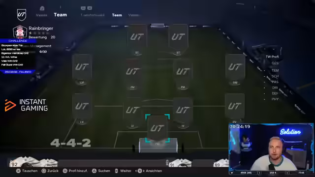 10:47:41Der Streamer testet verschiedene Spieler und Aufstellungen, um ein funktionierendes FIFA-Team zu finden. Er tauscht Spieler wie den Torwart Yashin gegen Pushkas aus und experimentiert mit Taktiken wie der Falschen Neun. Er analysiert die Leistung von Spielern wie Iniesta und Pushkas kritisch, lobt aber auch einzelne Aktionen wie präzise Pässe. Parallel dazu werden neue Spieler wie Schmeichel getestet. Der Fokus liegt auf der Suche nach der idealen Kombination von Spielern und Taktiken, die dem eigenen Playstyle entsprechen.
