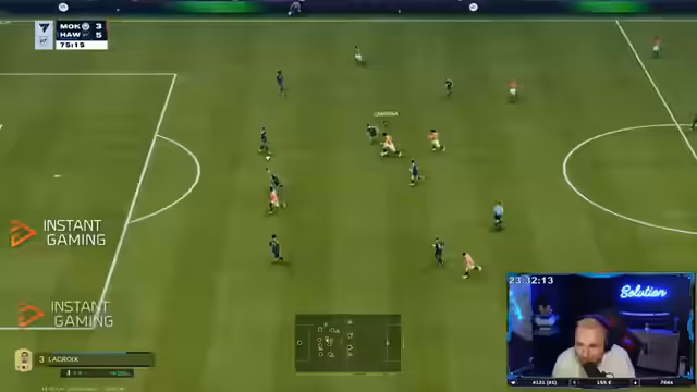 04:00:10Während des Spiels gegen den 'Artist' Casey treten erhebliche technische und verbindungsbedingte Probleme auf. Der Streamer und sein Gegner spielen auf extrem hohem Ping (ca. 100), was zu unfairen Spielsituationen führt. Der Streamer beschwert sich über das Unvermögen, die Taktik oder Formation während des Spiels zu ändern, was er als Bug oder Handicap empfindet. Er fordert seinen Gegner auf, auf seine deutschen Server zu kommen, um eine faire Verbindung zu gewährleisten, was die zentrale Frustration dieser Match-Sektion darstellt.