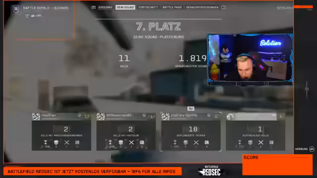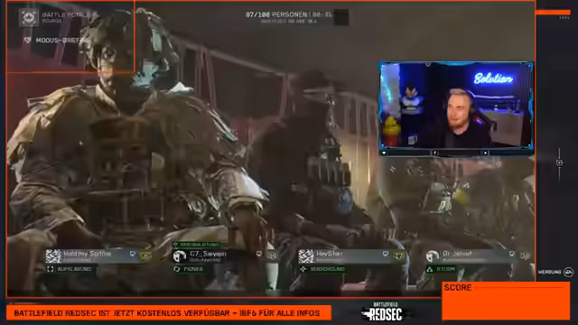 00:00:00Der Streamer beginnt mit technischen Schwierigkeiten, die er vor jedem Stream mit seinem Elgato Cam Link hat. Er äußert sich sehr müde, da er nur vier Stunden geschlafen hat. Der Fokus liegt auf dem neuen kostenlosen Battlefield Red Sec Battle Royale Modus, den er als Konkurrenz zu Fortnite und Warzone sieht. Nach anfänglicher Skepsis ist er von der Optik und dem Konzept des Spiels beeindruckt und freut sich besonders auf den Gauntlet-Modus, der als Weiterentwicklung des Battle Royale-Genres mit Missionen pro Runde erscheint.