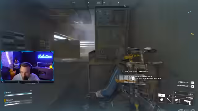 03:44:03Der Streamer und sein Mitspieler Noah koordinieren sich im Spiel, um ein gegnerisches Team zu bekämpfen. Sie nutzen taktische Elemente wie Barrikaden und versuchen, sich gegenseitig zu heilen. Der Verlauf ist von großer Hetze und Stress geprägt, als Noah in Gefahr gerät und der Streamer ihm zur Hilfe eilt. Das Ziel ist, den Gegner mit gezielten Schüssen, insbesondere auf seine „Weichteile“, zu eliminieren.