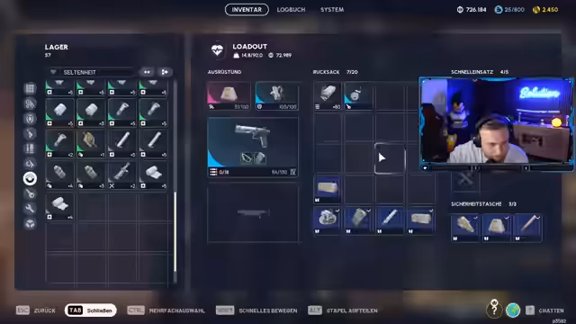 07:25:07Nach der Pause kehrt der Streamer zu ARK zurück. Er kommuniziert intensiv mit seinem Teammitglied Danny und versucht, Loot zu sichern. Es kommt zu kritischen Aktionen, bei denen der Streamer Danny dafür tadelt, nicht auf seine Hinweise zu hören. Die Stimmung ist angespannt, da der Erfolg der Runde davon abhängt.