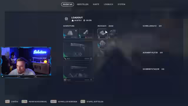 07:04:02Eine Pause von Resident Evil wird angekündigt, da das Spiel zu stressig und anstrengend ist. Stattdessen soll eine Expedition mit einem "treuen Stück" folgen. Es wird über die Wichtigkeit bestimmter Blueprints wie Wolfpack, Shock-Me und Radar-Fackel gesprochen. Der Streamer findet es jedoch absurd, für einen Rocketeer zwei Wolfpacks zu benötigen, was als "kompletter Giga-Quatsch" bezeichnet wird.