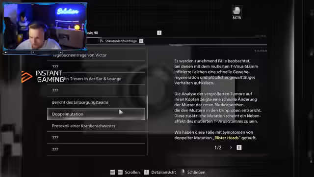 01:28:35Bei der Lösung eines Rätsels in Resident Evil, das darin besteht, einem NPC Organe zu implantieren, um ein Armband zu erhalten, stößt der Streamer auf logische Hürden. Für ihn ist der Schritt nicht nachvollziehbar, da er zu logisch denkt und die eigentliche Absicht des NPCs nicht erkennt. Obwohl er das Rätsel letztendlich löst, ist er frustriert über die als unlogisch empfundene Spielemechanik und seine Unfähigkeit, die Lösung selbstständig zu finden, was er auf seine angeborene High-IQ-Natur zurückführt.
