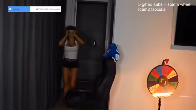 00:06:33Die Streamerin unterhält sich über Fitnessaktivitäten wie Leg Extensions und Hip Thrusts. Sie bittet die Zuschauer um Riz-Komplimente und führt eine Challenge durch. Es werden verschiedene Fitnessbewegungen demonstriert und über körperliche Eigenschaften gesprochen. Die Ankündigung der Spin Wheel-Aktion wird getroffen, bei der die Zuschauer suggestieren können, was auf das Rad geschrieben werden soll.