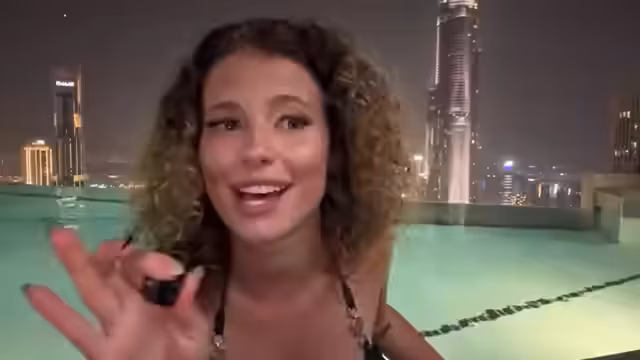 00:01:20Die Streamerin ist nach Dubai gereist, um am Infinity Pool eines Hotels zu streamen. Sie erwähnt eine Zusammenarbeit mit 'Never Baby' in Berlin und ist nun allein im Hotel, da ihre Freundin im Zimmer geblieben ist. Initial hat sie technische Schwierigkeiten mit dem Delay und der Audioqualität. Sie interagiert mit dem Chat und gibt bekannt, weitere Inhalte auf Snapchat posten zu wollen.