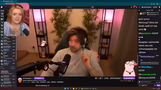 01:32:54Während des Streams treten wiederholt Internetprobleme auf, die auf Downloads durch andere Personen im Haushalt zurückzuführen sind, insbesondere von Nele. Dies führt zu Ruckeln im Stream und zu einer kurzen Unterbrechung, um das Problem zu klären. Gleichzeitig interagiert der Streamer intensiv mit dem Chat. Es werden Witze über das Alter gemacht und diskutiert, wie wichtig die regelmäßige Interaktion mit der Community für den Streamer ist. Auch eine neue Kooperation mit 'Larry' wird angekündigt, bei der die Zuschauer Codes sammeln können.