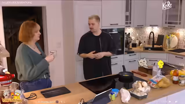 03:42:16Zu Beginn des Streams wird der Plan angesprochen, die beschichteten Pfannen zur Neubeschichtung einzuschenden, was eine Pause von zwei bis drei Wochen erfordern wird. Der Fokus liegt auf der Vorbereitung eines Gerichts, das als Hühnerfrikassee geplant ist, aber vegan umgesetzt werden soll. Die Zutaten werden geprüft, insbesondere wird die Veganität von Senf und anderen Zutaten analysiert. Die Vorfreude auf das erste eigene Hühnerfrikassee wird ausgedrückt, da es sich um ein Gericht handelt, das in der Vergangenheit gemeinsam mit der Mutter gekocht und als besonders lecker empfunden wurde.