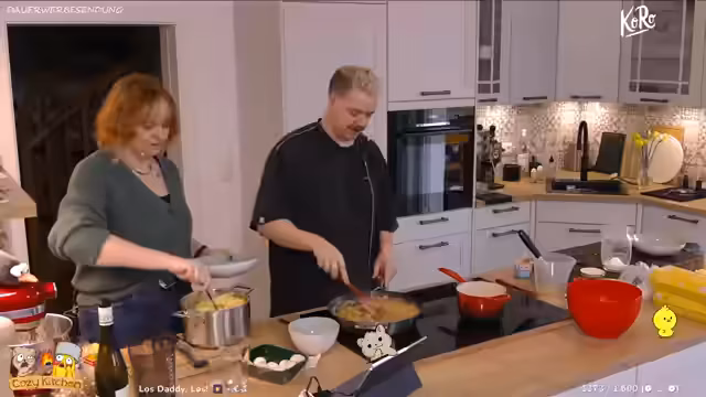04:39:54Beim Kochen wird von der ursprünglichen Rezeptvorgabe abgewichen, da die genaue Menge an Butter nicht angegeben ist und die Streamerin ihre eigene Version der Mehlschwitze nach französischer Art zubereitet. Dies führt zu einer Diskussion über kulinarische Präferenzen und Erfahrungen aus der Kindheit. Der Fokus liegt auf der Handhabung der Zutaten, der Kontrolle der Hitze, um eine braune Sauce zu vermeiden, und der schrittweisen Zugabe von Gemüse wie Karotten, Spargel und Tiefkühl-Erbsen, um den gewünschten Biss zu erhalten.