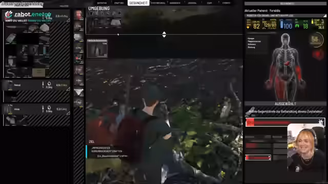 06:39:36Es kommt zu einem ernsten Vorfall, bei dem sich ein Spieler, Ranger, verletzt hat und dringend medizinische Versorgung benötigt. Nach anfänglichen Schwierigkeiten, den Verletzungsmechanismus zu verstehen, wird erläutert, wie man eine Blutungsverletzung vom Grad C2 richtig behandelt: Man muss die Verletzung anwählen, einen Verband auswählen und dann die Behandlungsfunktion aktivieren. Dies erfordert Teamarbeit und das Vorhandensein von medizinischem Material.