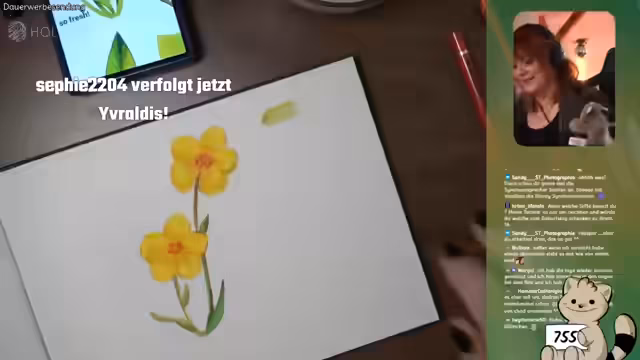 01:06:51Um die restliche Zeit zu füllen, wurde eine spontane Mal-Session gestartet. Der Streamer gab zu, dass er ohne die Anregung der Community das Malen wahrscheinlich nicht weiter betreiben würde. Dabei stieß er auf mehrere technische und persönliche Hürden: sein Lieblingsbleistift, ein rosaner Faber-Castell-Stift, war verschwunden, und das Skizzenbuch fälschlicherweise von hinten aufgemacht worden. Ziel war es, Blumen zu üben, indem man diese zunächst abzeichnet und sich langsam an die Details herantastet. Der Streamer betonte, dass es ihm um den Lernprozess und das gemeinsame Üben ging.