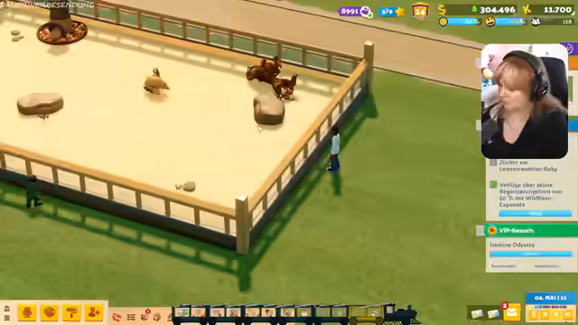 02:52:09Der Punktpanda muss sich dringend vermehren, doch zunächst muss ein Partner gefunden werden. Im Gehege wird nun ein Babystall installiert, damit sich die Tiere fortpflanzen können. Es wird ein großes Terrarium hergestellt, in das ein Fleischfresser gesetzt wird. Die Frösche vermehren sich bereits, was der Streamer als positiv bewertet. Bei den Farbhamstern wird beobachtet, dass sich die Farben bei der Vermehrung mischen. Es stellt sich die Herausforderung heraus, dass Tiere sich nur vermehren, wenn sie vollkommen zufrieden sind, und die Notwendigkeit einer perfekten Haltung wird betont.