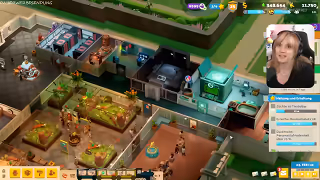 01:50:15Die Tiere werden ins Freie verlegt, um den Besuchern mehr Platz für Snacks zu bieten. Eine Tavernentheke wird als neue Attraktion hinzugefügt, was die Streamerin begeistert. Eine weitere Assistentin, Alisha, wird rekrutiert. Es wird festgestellt, dass noch viele Bereiche des Museums freigeschaltet und dekoriert werden müssen. Ein kranker Schick-Micky-Löwe wird gefunden, dessen Analyse weiteres Wissen generieren soll. Das Ziel ist es, ein voll funktionstüchtiges Wildtiererhaltungsmuseum zu schaffen, indem gesunde Tiere in die Wildnis entlassen werden, um das Ökosystem der Fernab-Inseln wiederzubeleben und Tierschutzpunkte zu sammeln. Diese Punkte können für neue Tiere im Adoptionsmenü eingelöst werden und erhöhen die Biodiversitätsstufe, was zu selteneren Exponaten führen kann. Ein Tierheilbad wird hinzugefügt, um Tiere zu verwöhnen und Museumsgäste zu beeindrucken. Ein Dickig-Schnapper und eine Danger-Nudel werden gewaschen, und es wird ein Borkenferkel entdeckt. Die Streamerin plant, Plätzchen zu backen, darunter solche aus Sonnenblumenkernen, Sesam und Honig sowie Quarkölteig-Kekse. Ein Capybara wird gefunden, das ein Windspiel wünscht. Ein Tier stirbt, was die Streamerin bedauert. Das Museum benötigt weiterhin Hausmeister, um die Sauberkeit zu gewährleisten. Ein Springbock wird gewaschen und entlassen, um Tierschutzpunkte zu sammeln. Ein Pollenpaket wird hergestellt, um die Biodiversität zu steigern. Ein Schnupptier mit großen Nasen wird gefunden und muss in den Dschungel gebracht werden.