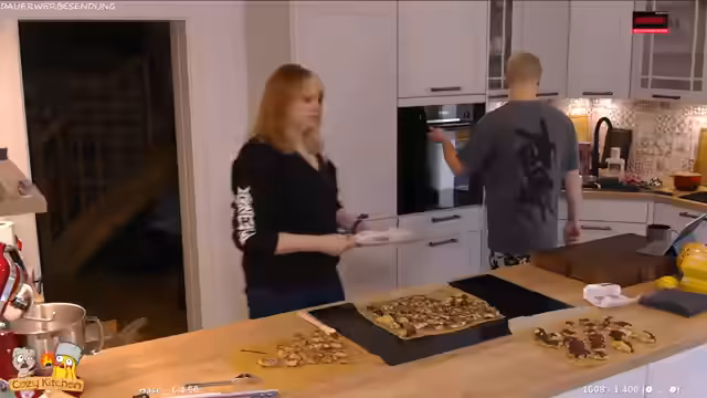 05:27:23Die Streamerin erinnert sich an ihre eigenen Kindheitserfahrungen beim Plätzchenbacken mit ihrer Mutter und Oma. Sie beschreibt die Tradition, jedes Jahr gemeinsam Kekse zu backen und diese in der Familie und bei Kollegen zu verschenken. Sie gibt zu, dass ihre Herangehensweise eher chaotisch und liebevoll ist, während ihr Partner Oli sehr effizient arbeitet. Die Kekse sollen für einen Besuch der gemeinsamen Bekannten Belle in zwei Wochen genutzt werden, um das gemeinsame Kochen und Backen zu genießen.