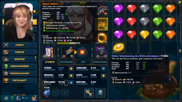 01:18:06Eine Schildkröte wird vorgestellt, deren Stoffwechsel selten Ausscheidungen erzeugt und die ihren Winterschlaf in fruchtbarem Boden verbringt, wobei Pflanzen auf ihrem Rücken Wurzeln schlagen, was ihr eine einfache Nahrungsquelle bietet und sie sehr autonom macht. Nach der Analyse eines Tieres kann es auf Expedition geschickt werden. Das Lebkuchen-Dorf ist eine neue Ergänzung im Museum. Die Streamerin sucht nach einem Assistenten und rekrutiert Fabi, die sich über die Anstellung freut. Es werden weitere Terrarien benötigt, da ein Bullenfrosch und andere Tiere untergebracht werden müssen. Ein Leckerli-Vorrat und eine Tierauskunft sind ebenfalls neu hinzugekommen, was eine Erweiterung des Raumes erfordert. Es wird festgestellt, dass kranke Tiere benötigt werden, um Wissen durch Behandlungen in der Tierwohlabteilung zu generieren. Ein Frosch mit dem Attribut 'Glucke' erhöht die Gesundheit des Nachwuchses im selben Gehege.