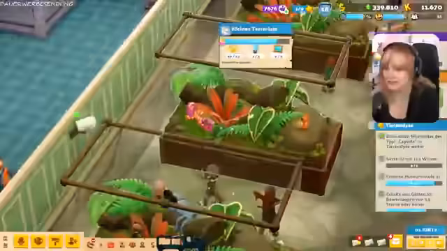 00:57:25Der Stream wechselt zum Spiel Two Point Campus, speziell zum Modus 'True World Museum'. Die Streamerin zeigt den aktuellen Stand des Museums, das verschiedene Tiere in Terrarien beherbergt, darunter Zarbenvögel und Bartagamen. Während des Spiels treten jedoch technische Schwierigkeiten auf: Twitch-Verbindungen funktionieren nicht, und das Spiel selbst ist instabil, was das Spielen und Anstellen von Mitarbeitern massiv erschwert.