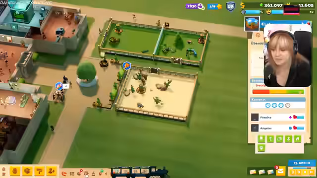 01:38:47Die Streamerin ist frustriert, da keine kranken Tiere für die Analyse gefunden werden. Sie beschließt, weitere Tiere aus der Savanne zu holen, um die Chancen auf kranke Exemplare zu erhöhen. Währenddessen werden Pläne für die nächste Woche besprochen: Montag und Dienstag sind für Termine und Reels-Drehs reserviert, Dienstagabend findet ein WoW-Stream statt. Mittwoch ist streamfrei und könnte für einen Lesestream genutzt werden. Ab Freitag geht die Streamerin bis Sonntag in den Urlaub, um mit ihrer besten Freundin ein Wellnesshotel zu besuchen. Dort sind Saunen, eine griechische Saunalandschaft, ein neuer Wellnessbereich und Restaurants vorhanden. Zusätzlich wurden Massagen gebucht, um maximale Entspannung zu gewährleisten. Eine Giraffe wird gefunden, ist aber ebenfalls nicht krank. Die Lebensraumkapazität ist voll ausgeschöpft, was die Aufnahme weiterer Tiere erschwert. Ein Zickzack-Zebra wird gefunden, das krank ist, was die Möglichkeit zur Analyse bietet. Durch die Behandlung des Zebras wird mehr Wissen über die Tiere gesammelt.