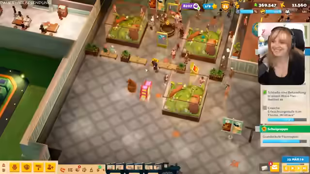 01:13:33Das Management des Tiermuseums wird thematisiert, insbesondere die Gesundheit der Mitarbeiter und der Tiere. So wird erwähnt, dass ein kranker Tierpfleger gesucht wird und verschiedene Tiere, wie ein Psycho-Rabbit, an niedlichen Krankheiten leiden. Die Suche nach kranken Tieren ist zentral, um diese in der Tierwohlabteilung behandeln und analysieren zu können. Gleichzeitig wird das Personalmanagement thematisiert, indem der Streamer nach neuen Mitarbeitern sucht und Bewerbungen für verschiedene Positionen wie Assistant und Hausmeister entgegennimmt.