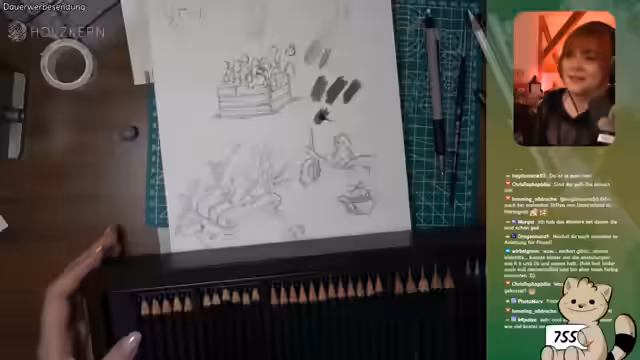 02:57:23Der Stream führt einen Raid durch und begrüßt andere Streamerinnen. Es erfolgt eine Vorstellung verschiedener Zeichenstifte, insbesondere Grafitstifte in unterschiedlichen Härtegraden. Die Vorstellerin erklärt die Vorzüge von matten Grafitstiften, die kein Glanzeffekt haben. Sie gibt Tipps zur Handhabung und weist auf die hohen Kosten qualitativ hochwertiger Materialien hin.
