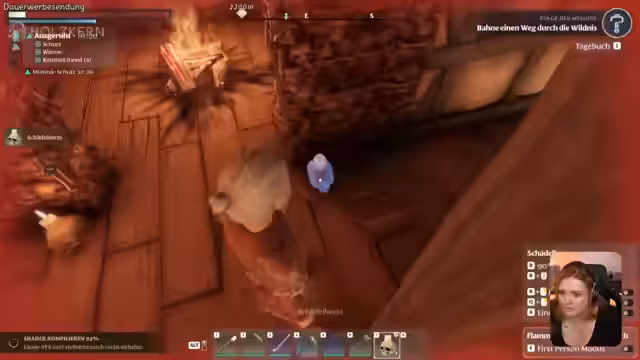 02:49:27Die Session beginnt mit der Auseinandersetzung mit einer Tigerwespe im Spiel, wobei der Schuss daneben geht. Die Grafik des Spiels wird gelobt. Parallel dazu kämpft die Streamerin mit technischen Problemen, insbesondere mit OBS, das unerwartet stark beansprucht wird, obwohl die Zuschauer ein flüssiges Bild sehen. Die Ursache für die Probleme wird in den Schatteneinstellungen vermutet, die daraufhin reduziert werden. Die Streamerin navigiert zu einem orangefarbenen Ausrufezeichen auf der Karte, wobei sie einen riskanten Sprung in den Wald wagt und auf eine Kupferressource stößt, die sie markiert. Munitionsknappheit wird thematisiert, und die Streamerin äußert ihre Faszination für die Spielwelt, während sie gleichzeitig einen Schnellreisepunkt oder eine Basis benötigt.