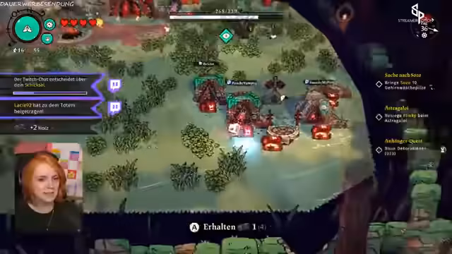 01:13:51Der Aufbau des Kults wird fortgesetzt, indem neue Anhänger via Twitch-Extension reingebracht werden. Der Streamer erledigt im Spiel Aufgaben, kocht Nahrung für die hungernden Mitglieder und verarbeitet gefundene Ressourcen. Es kommt zu einigen unvorhergesehenen Todesfällen unter den Anhängern, was den Kult jedoch auch neue Grabplätze und Freischaltungen beschert. Die Interaktion mit der Community steht im Vordergrund, während der Kult langsam wächst und sich entwickelt.
