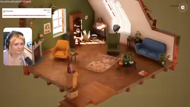 03:00:01Der Stream beginnt mit der Beobachtung und Einrichtung einer颇为 ungewöhnlichen Wohnung, die als Zuhaus von jemandem beschrieben wird, der mit Geld kein Glück kaufen kann. Der Fokus liegt auf der Anordnung von Möbelstücken wie einer Kanzenlampe, Aufziehbahnautos und zwei Kisten mit Resten. Es werden verschiedene Versuche unternommen, Gegenstände unter einem Bett oder in Nischen zu platzieren, was zu unübersichtlichen und chaotischen Arrangements führt. Die Ästhetik des Raumes wird als sehr sauber und ungemütlich empfunden, mit einem Hocker als einzig positiv hervorgehobenem Möbelstück. Streamerinnen wie Olli helfen bei der Organisation, was jedoch aufgrund der schieren Menge an Gegenständen eine Herausforderung darstellt.