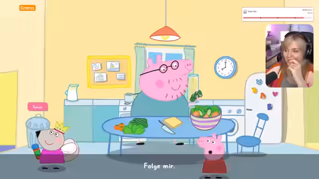 03:40:05Der Stream beginnt mit Diskussionen über das anstehende Mittagessen und die bevorstehende Produktion von Hörnern. Die Streamerin kündigt an, dass in etwa einer halben Stunde mit dem Spiel 'Peppa Pig' begonnen wird, wobei sie die Wahl dieses Spiels als unerklärlich bezeichnet. Sie erwähnt, dass das Spiel, das normalerweise 40 Euro kostet, am Vormittag gekauft wurde, aber aktuell im Angebot ist, was sie als Glücksfall betrachtet.